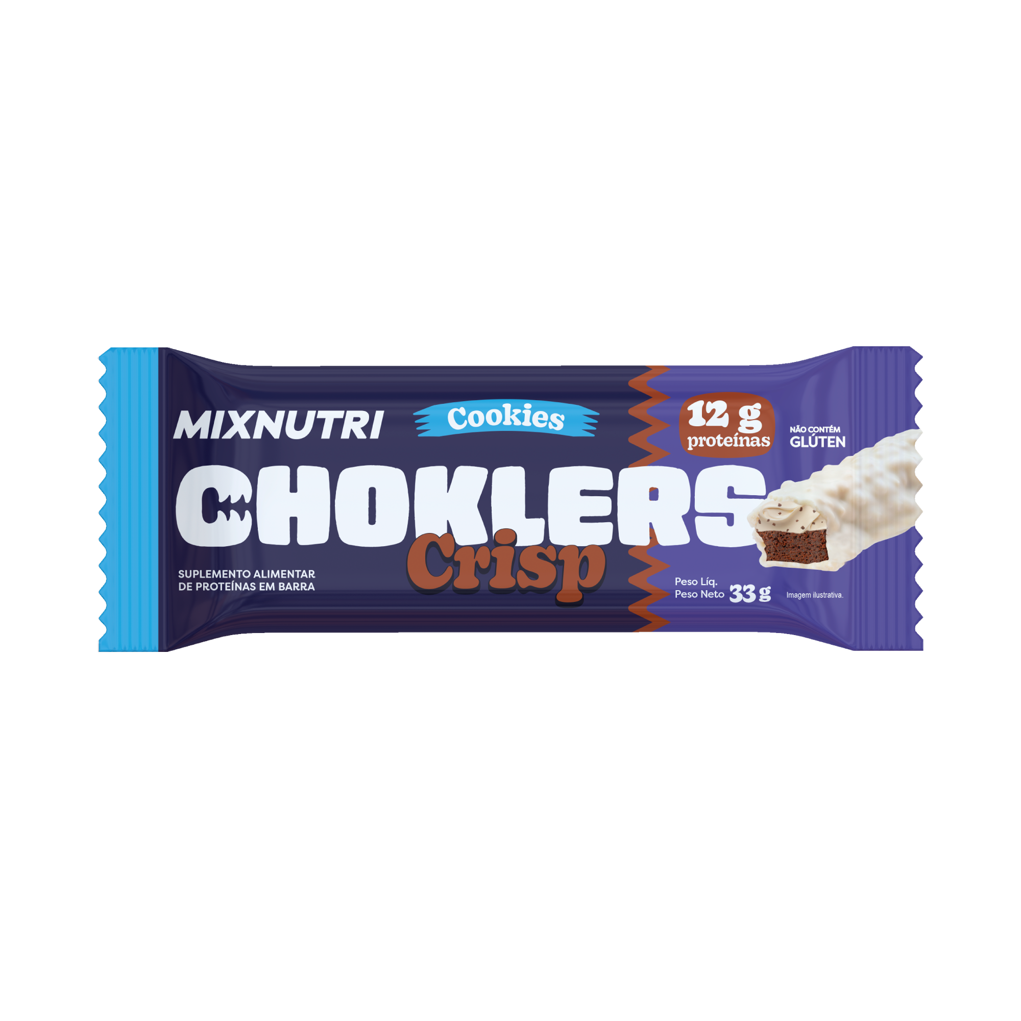 A nova CHOKLERS CRISP COOKIES é uma barra de proteína, extremamente recheada e sem adição de açúcares, que oferece 12g de proteína em 33g de produto, além de ser incrivelmente macia. Perfeita para ter sempre à mão, pode ser consumida antes ou depois do treino, ou até mesmo como lanche entre as refeições ou sobremesa para matar a vontade de doce.