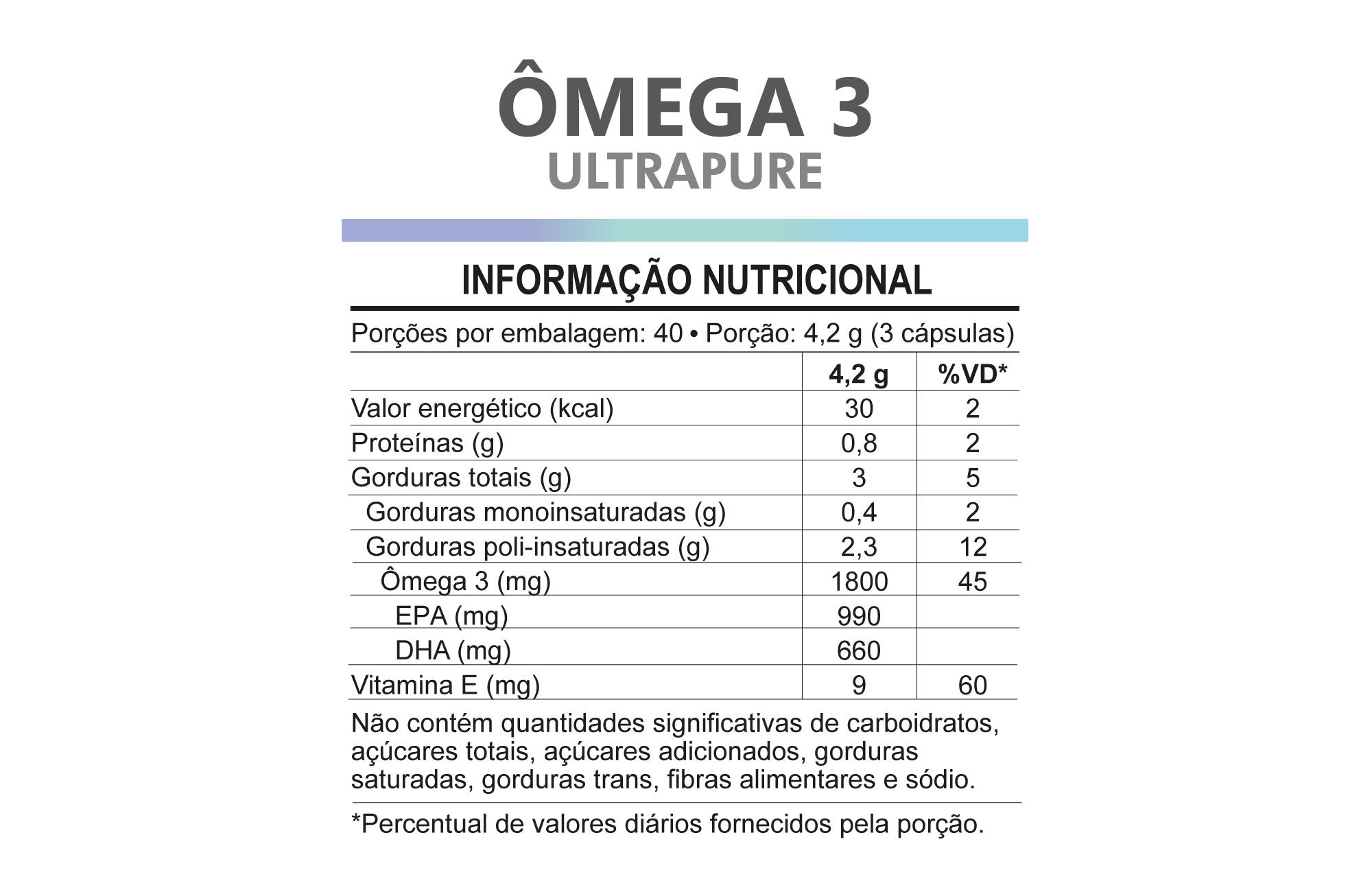 ![]() | Suplemento premium de óleo de peixe de alta concentração, com 990 mg de EPA e 660 mg de DHA por porção. |
